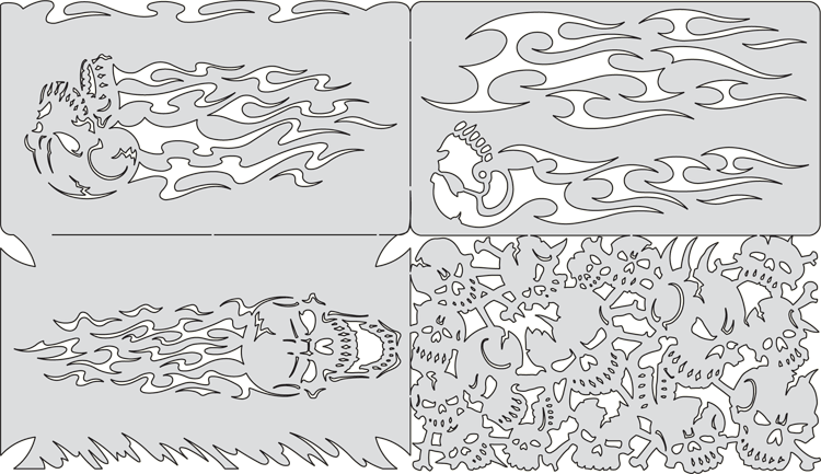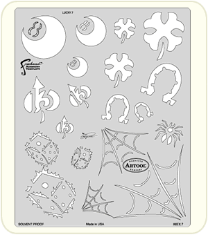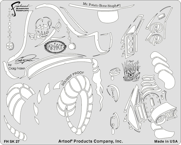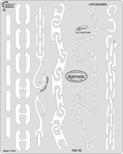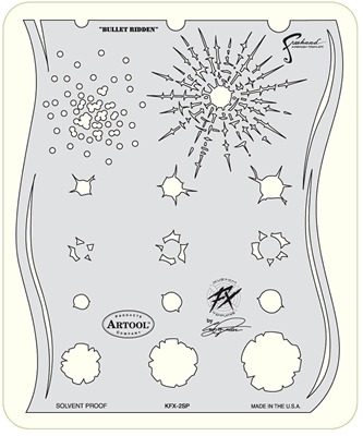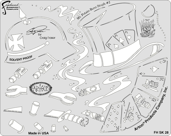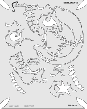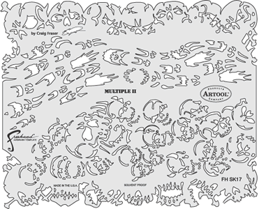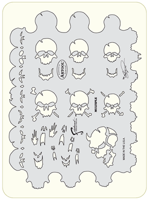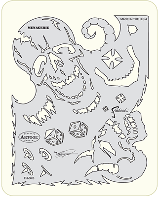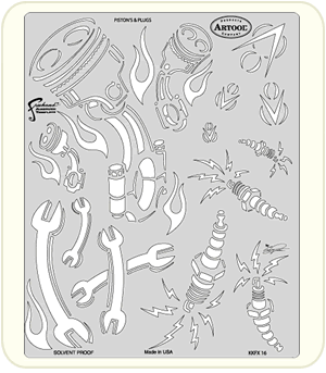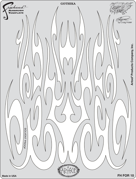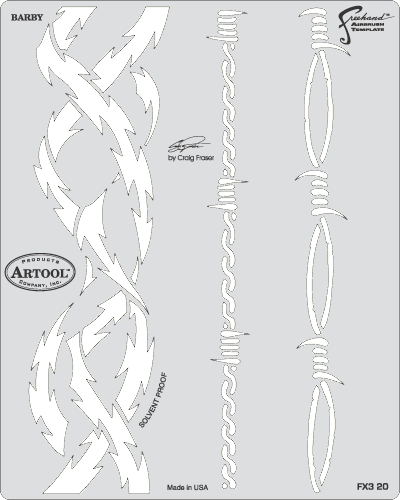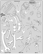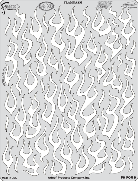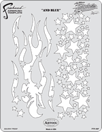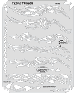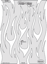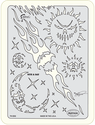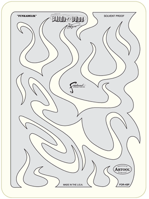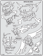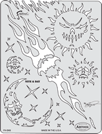 The eye-popping, ever-popular Artool Freehand Airbrush Templates for the crowd of kustom automotive painters is now in a new size! The new Artool MINI SERIES Freehand Airbrush Templates are PERFECT for all 1/8th, 1/10th and 1/12th model scales and are especially HOT! HOT! HOT! for RC cars, model airplanes and trains, model cars and kits, figure models, body art and a myriad of kustom automotive applications!